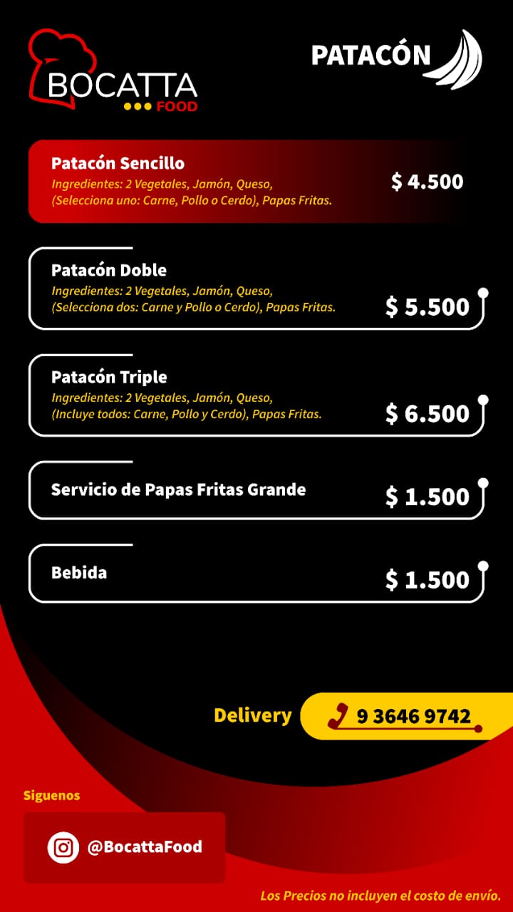 Pizzas, patacones, rolls, deditos de queso, papás fritas, chorrillanas y más.